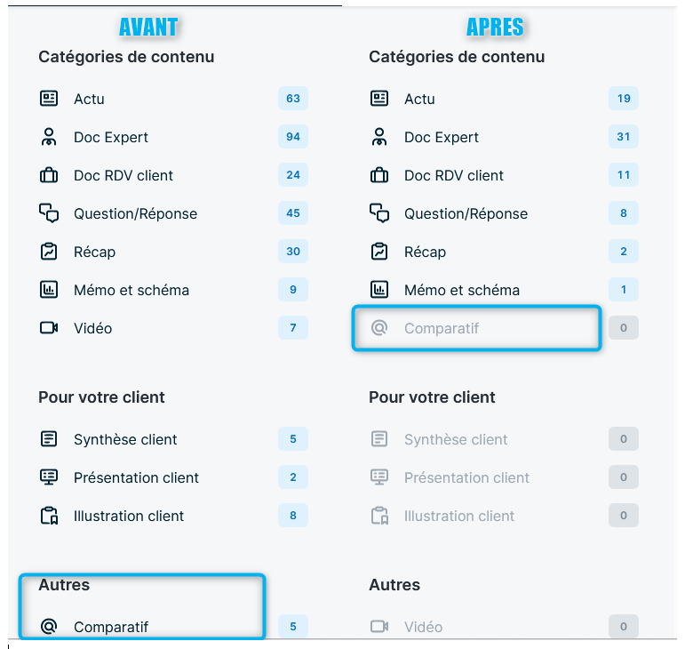Pour vous offrir une navigation plus intuitive, nous avons mieux mis en évidence la catégorie Comparatif. Ces contenus sont désormais positionnés à la place des vidéos (que vous retrouvez plus bas dans la page).