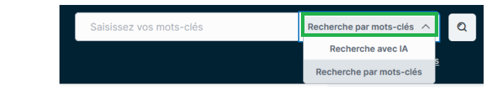 Pour désactiver le mode de recherche par IA, cliquez à nouveau sur le bouton switch (qui devient alors gris) ; le mode de recherche par mots-clés sera dorénavant proposé par défaut dans votre Fidnet.